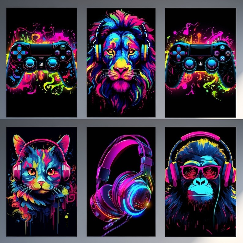 This is a Digital Product (no physical product will be shipped) that includes a bundle of 6 Gaming Poster & Neon Gaming Prints wall art printable designs.